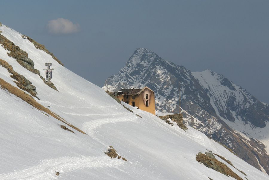 Die Ruine war bis 22.Dezember das stolze Rifugio Guglielmina, in dem ich das Jahr zuvor noch sehr gut gespeist habe. Sehr schade was da passiert ist, und irgendwie unglaublich wie wenig von dem Steinhaus übrig gebieben ist. Vom Olen-Pass Richtung Gressoney waren die Hänge dafür kaum verspurt.