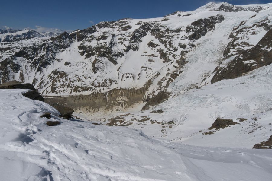 Hier geht es nach ca. 400 m Aufstieg Richtung Punta Giordani runter zum Bors-Gletscher. Seehr schön bei perfekten Firnbedingungen.