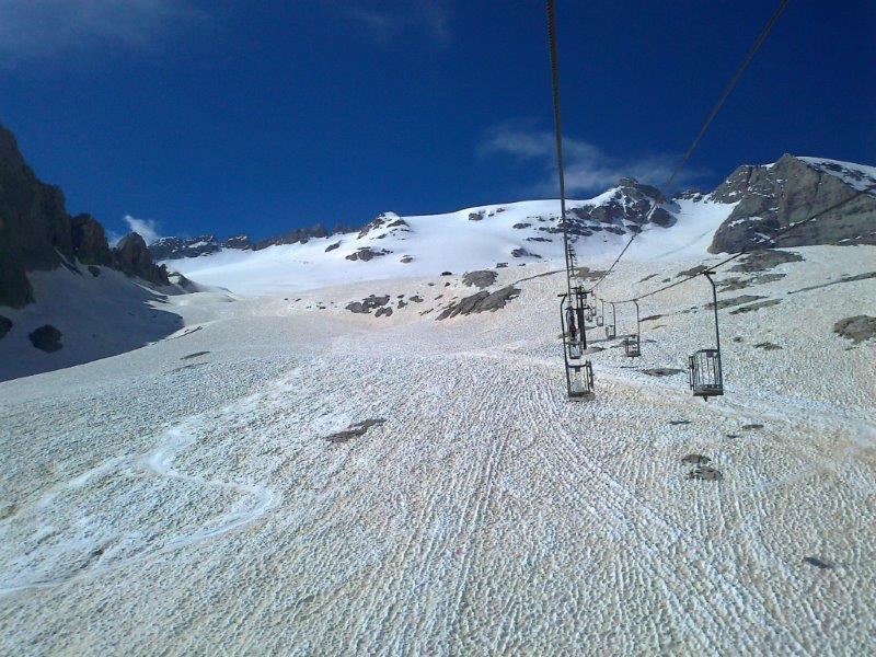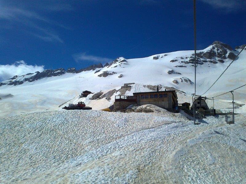 Dass Ende Juni jedoch eine durchgehende Skiabfahrt bis zum Stausee machbar ist, kommt nur alle paar Jahre vor. Besonders erfreulich war zudem, dass das junge Hütten- und Liftpersonal am Korblift idealistisch "retro" drauf ist und den Korblift auch nach Saisonschluss wochenends durchgehend laufen ließ; seit 15.6. dann wieder täglich.