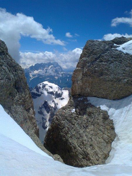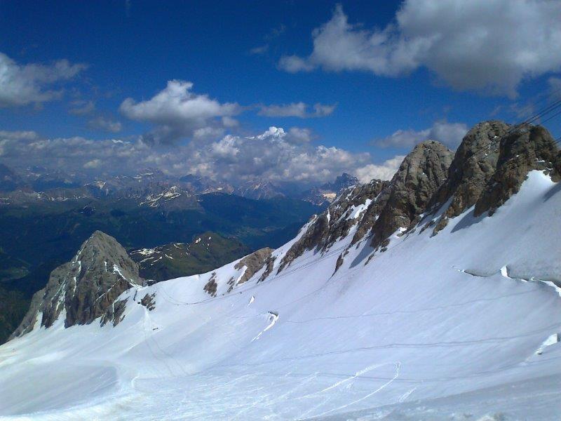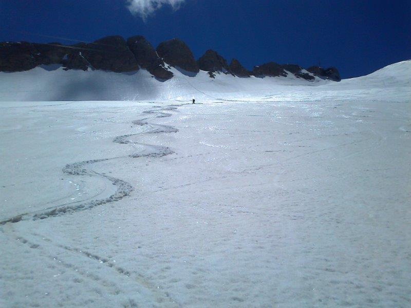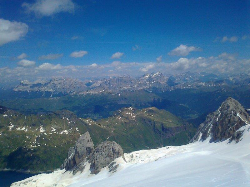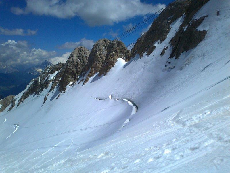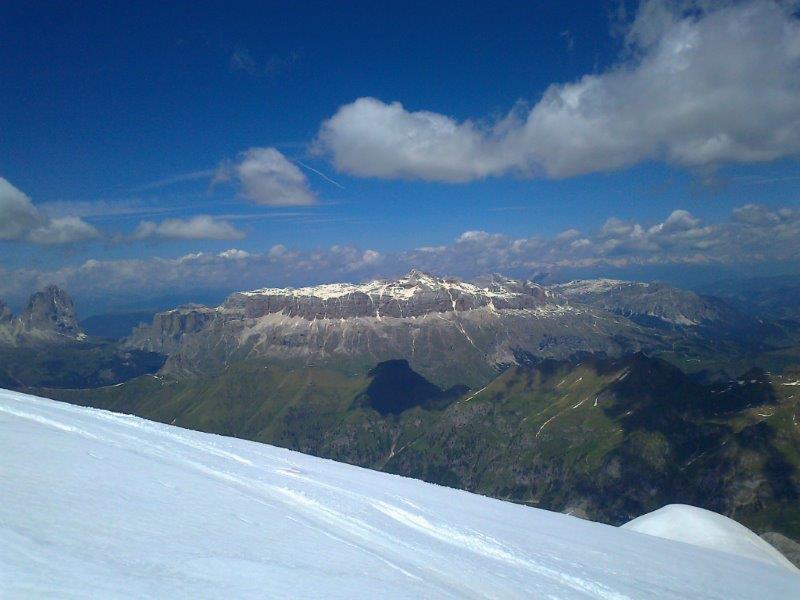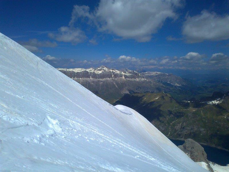 Eine Sommerskitour auf die Marmolada Ende Juni ist grundsätzlich nichts besonderes. Während der Hauptgipfel - sei es über Westgrat oder über die Schena del Mul - eine aufgrund des Restschnees ggf. recht anspruchsvolle Schnee-Fels-Bergtour bedeuten kann, liegt in aller Regel auf den flacheren Teilen des Gletschers noch genügend Winterschnee, so dass man auch unangeseilt zum Skifahrergipfel Punta Rocca (3309m) laufen kann.