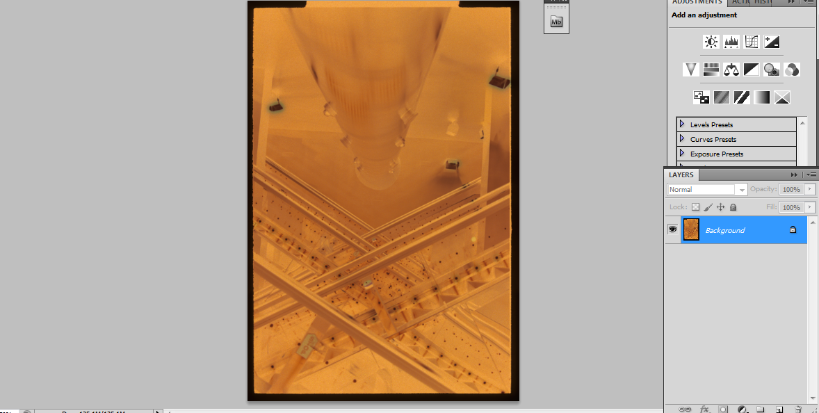 Below follows a series of images illustrating the removal of an organge mask (Cinestill Film, Exposed @ ISO 1600, develloped push +3 stops ).