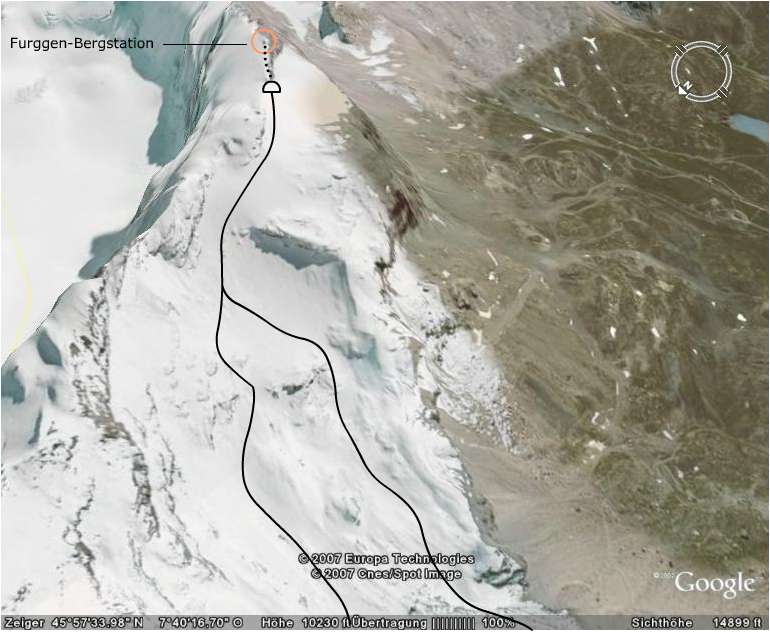 Die Pisten im Bereich der alten Cretazlifte sind heute teilweise noch zu erreichen, wurden aber wie gesagt schon 2004 z.T. nicht mehr gewalzt. Zwar sind sie auch heute noch im Pistenplan eingezeichnet, ich habe aber meine Zweifel, was die Präparation dieser Abfahrten angeht. Schon 2004 konnte man teils noch deutlich das Trassé der Pisten sehen, die aber nicht mehr präpatiert wurden. Dies kann man jetzt von zwei Seiten betrachten: einerseits bleiben natürlich diese Hänge jetzt als Freeridehänge, was im Prinzip zu begrüßen ist. Auf der anderen Seite sind sie aber ohne die SB Pancheron schlechter zu erreichen, zum anderen gibt es unten Flachstücke, die man eigentlich präparieren müsste, damit sie zu befahren sind. Es bleibt abzuwarten, ob hier noch in Zukunft gewalzt wird, ich zweifle etwas daran... Gerade die Steilhänge an der Pancheron sind unabhängig davon - wie gesagt - aber völlig verschwunden, was in jededem ein Verlust ist, zumal die Furggenbahn ja bekanntlich schon lang nicht mehr fährt, worauf ich aber hier nicht weiter eingehe, weil ich sie selbst auch nicht mehr in Betrieb erlebt habe (trotzdem muss das eine der geilsten Pisten der Alpen gewesen sein... ).