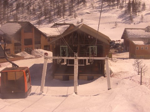1.3.2009, 9. Tag - Lorica (O) und Palumbo Sila (P)Da ich aufgrund Internet und Lärm erst nach Mitternacht ins Bett kam, hab ich mir den Wecker erst auf 8 Uhr gestellt und aufs Frühstück verzichtet. Im Nachhinein hat mich das doch schwer geärgert, aber ich war so schon erst gegen 9:30 am Korblift und musste auch noch ne viertel Stunde an der einzigen Kasse warten.
