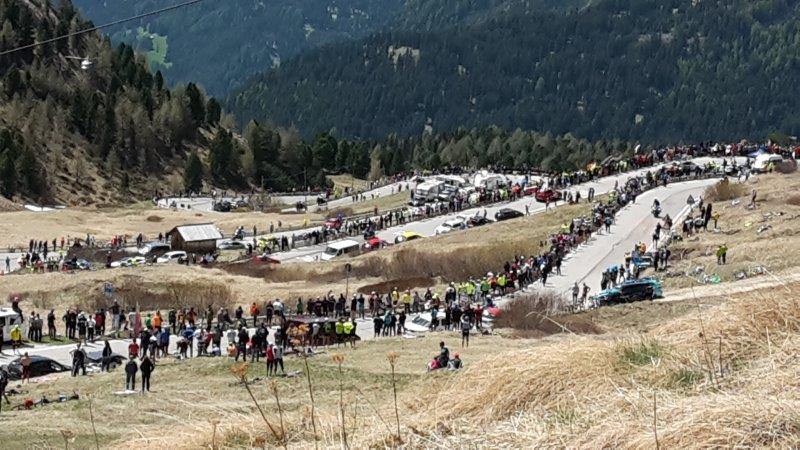 zum Giro, 1. Bergwertung am Pordoipass der Dolomitenetappe mit 4000 Höhenmetern