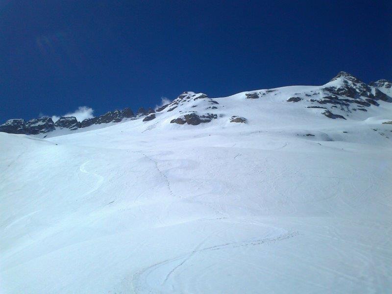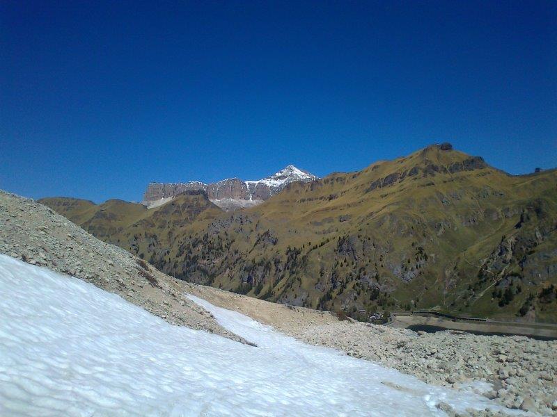 hier war dann Schluss mit dem Schnee, ca. 10min zu Fuß bis zur Diga Fedaia
