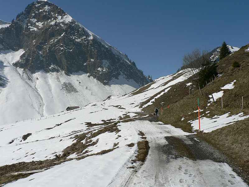 Alles der Reihe nach. Morgen aufgestanden. Skijacke gar nicht mitgenommen. In den Zug bis Flüelen. Unterwegs an der Autobahn entlang mich wieder köstlich amüsiert. eine Blechkolonne von Amsteg bis zum Tunnelportal. Und dabei weis es jetzt wirklich jeder mensch, dass an Ostern an dem Loch Stau ist.