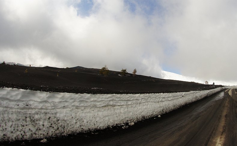 Auf der Straße zum Etna Nord Skigebiet gabs sogar einige voll schwarz bedeckte Schneefelder - siehe Foto unten.