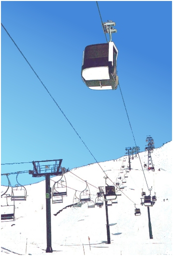 Danach ging es über die roten Pisten T3 und T1 hinab ins Tal nach Le Tour - schliesslich wollten wir den Skibus vor 10 Uhr erreichen. Ein paar Fotos von einem Seilbahn-Unikum mussten aber dennoch sein: