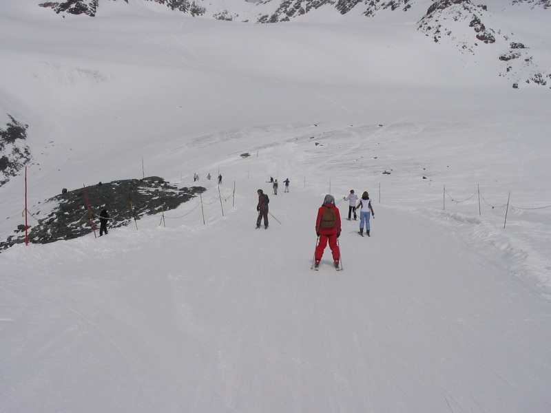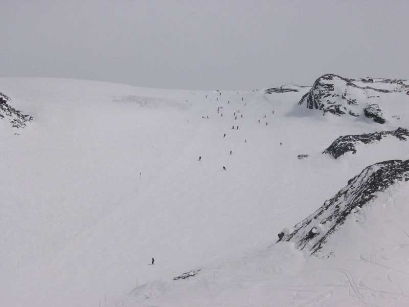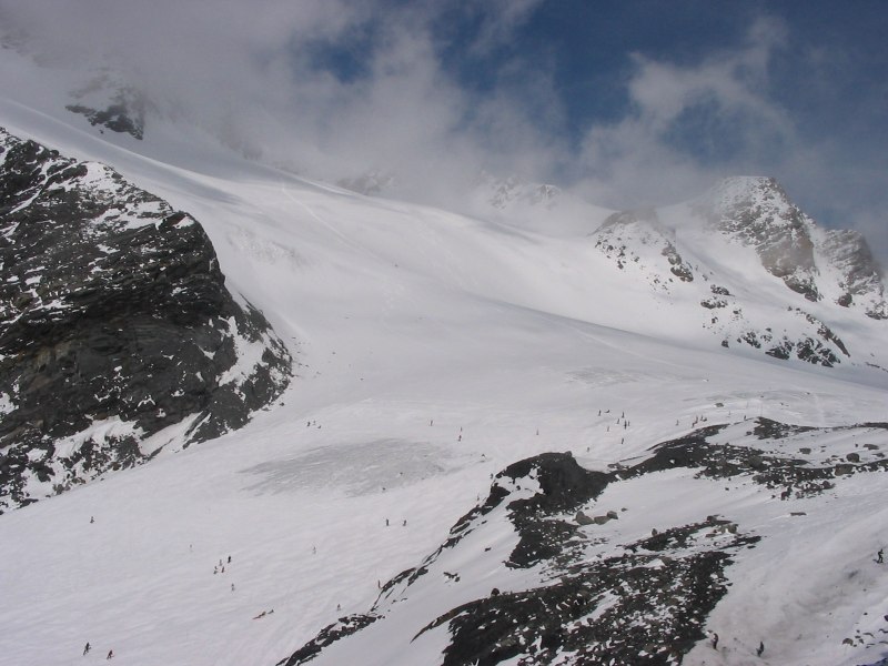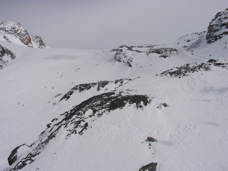 Zum Col: Sehr schwer zu sagen wieviel Eis da wirklich noch ist. Der Anfang in jedem Fall, hier führte die Piste bei meinen letzten Besuchen an mächtigen Spalten vorbei. Aber dann lässt es sehr schnell massiv nach, ich glaube nicht daß es mehr ist als die ersten hundert Meter.. Ich suche gleich noch ein paar Bilder raus. Gletscherstützen gibt es aber definitiv keine mehr.