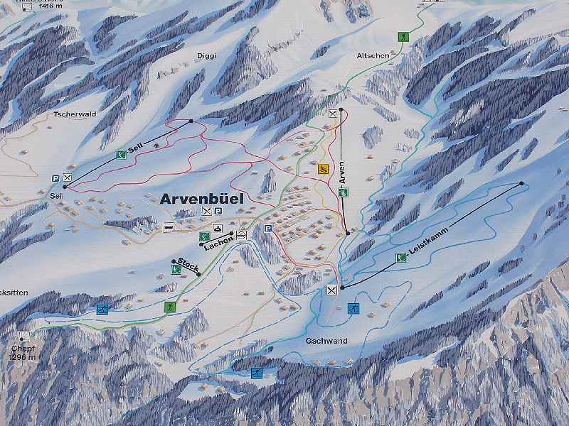 Dateikommentar: Pistenplan Arvenbühl. Pisten sind alle Blau niemals rot!