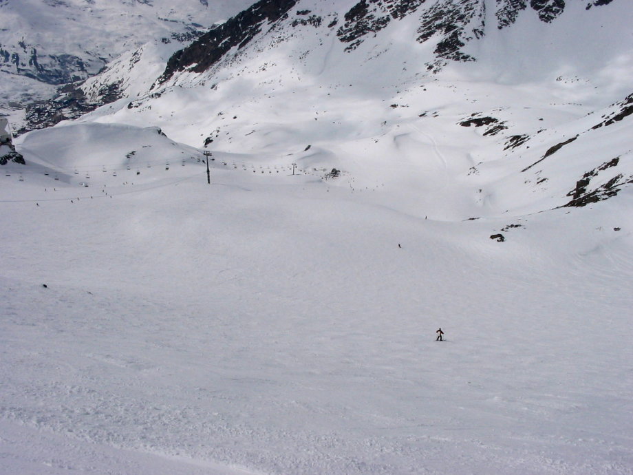 Wenn man all diese Berge dort unten als Schiberge kennt und sie vom Tal aus als hoch und steil und ausgesetzt empfindet, und wenn man weiß, wie es sich anfühlt, auf dem Carongipfel zu stehen und was für ein Gipfelgefühl man dort hat... : dann kann man vielleicht jetzt verstehen, warum der 3300 etwas Majestetisches hatte.. der Ort, wo die La Masse oder der Caron ein kleiner weißer Punkt von vielen sind in den zahllosen Ketten von Gipfeln.... der Gpfel der Gipfel des größten Schigebietes der Welt!