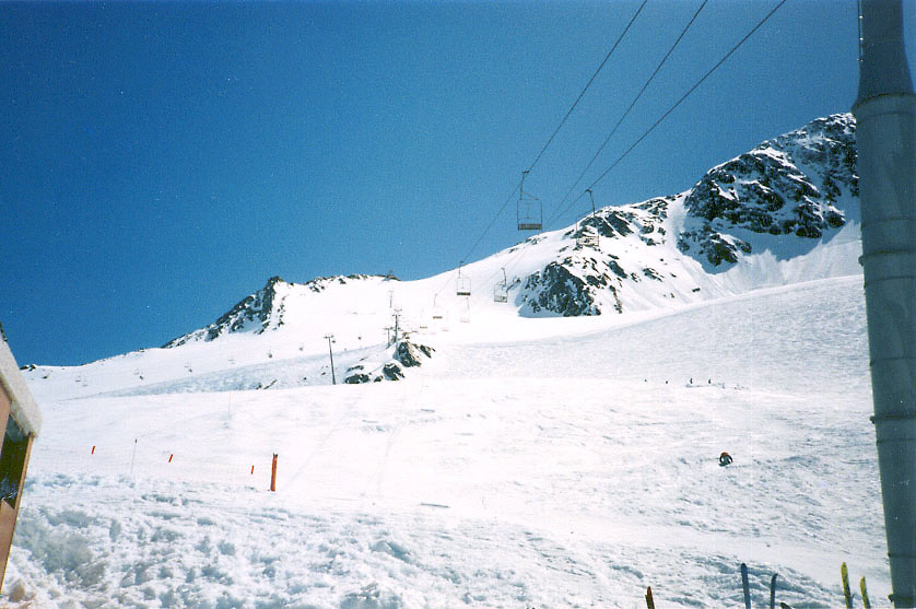 Doch irgendwann haben wir auch den mal nicht mehr bekommen. Während mein Kumpel Philip gelaufen ist nach Val Thorens (!), ist mir die vermutlich ohnehin beste Lösung eingefallen (wir hatten uns wie immer bei den panischen Rückkehrversuchen verloren, weil wir beide ohne Rücksicht auf Verluste durch das Chaos um Les Menuires durchnavigieren mussten... ). TK Reberty!! Dieser kleine Schlepplift war die Lösung. Als ortsnaher Übungslift lief er ewig und - das beste - man kam von dort zum TK Montaulever, jenem heute kaum noch beachteten Schlepper, der in den ersten Tagen mal die Verbindung zwischen Les Menuires und Val Thorens herstellte. Und auch der lief extrem lange, wir hatten ihn bisher meist nur nicht erreicht, weil wir keinen Lift davor mehr gefunden hatten, der uns nahe genug heran gebracht hätte. Die Kombination Reberty und Montaulever hat uns ab diesem Zeitpunkt immer gerettet... vermutlich haben wir Rekorde bei der Durchquerung der 3 Vallées aufgestellt, sowohl was die Zeit als auch was die Effizienz anging.... *träum von den alten Zeiten...