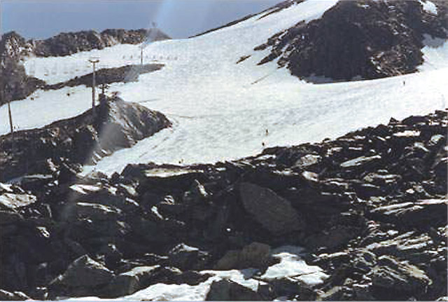 Ein Bild von historischem Wert: hoch oberhalb der höchsten Skistation Europas thront einem Adlerhorst gleich die Bergstation des 3300. Selbst die früher als hochgelegen empfundene Bergstation des Funitels oder die des Glacierliftes sind nur noch kleine Orte unterhalb. Und anders als dort ist von hier oben der Blick frei bis ins Flachland!!!