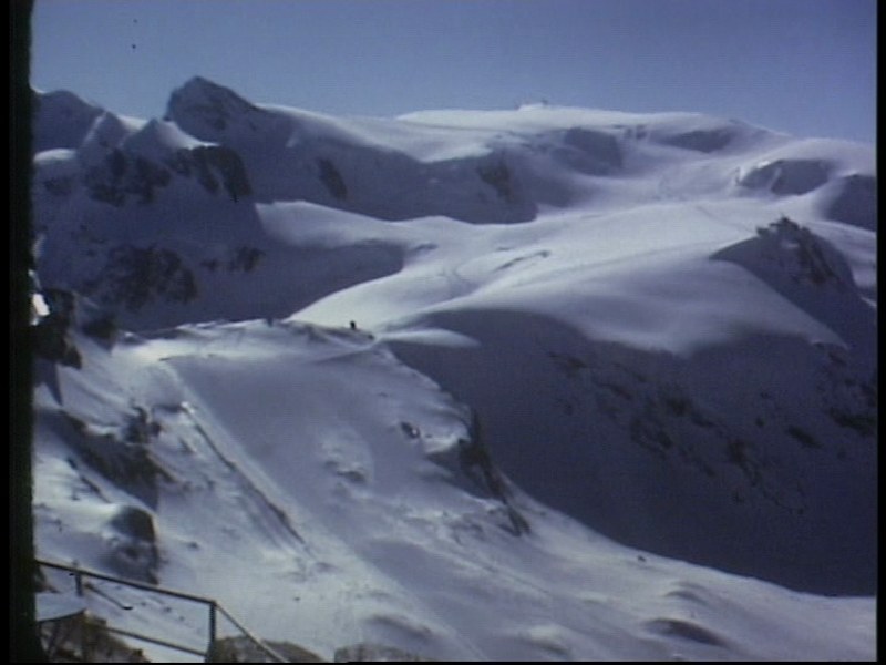 - gleichzeitig wurde die Furggen-Piste mit Hilfe von Sprengstoff (?) von Hindernissen befreit, von felsigen "Beulen, die den Moränenmantel durchbohrt haben" (wer übersetzt das eleganter?);