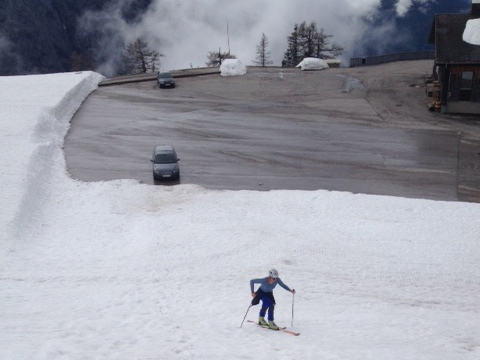 Echt schade, dass nicht mal einer auf die Idee kommt, auf solchen "Restschneefeldern" (wobei das in dem Fall eine Beleidigung ist) einen Skido-Schlepper-Betrieb gegen Bezahlung einzurichten...