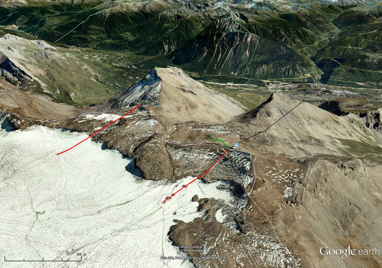Crans sieht wirklich nett aus; wobei ich mir die Lage oben am Gletscher noch nie so richtig vorstellen konnte - kannst Du das eventuell noch mal im Luftbild einzeichnen, die da früher die Anlagen verliefen?