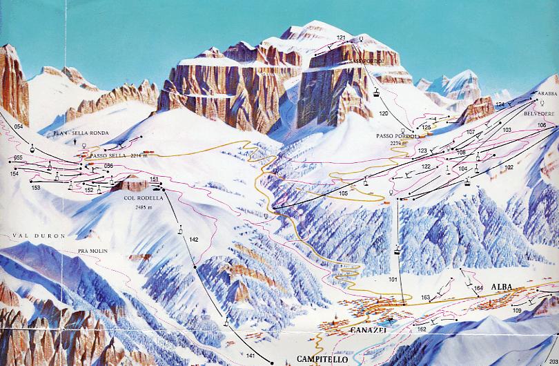 Es gab übrigens früher noch eine dritte Talabfahrt nach Canzei. Pista Bellavista, die direkt vom Pecol nach Canazei führte. Dazu gibt's hier schon ein Topic, wenn ich nicht irre.