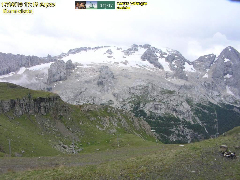 ^ Gezoomter Blick vom Sellajoch zur Marmolada. Schaut ja nicht wirklich nach Skibetrieb aus....