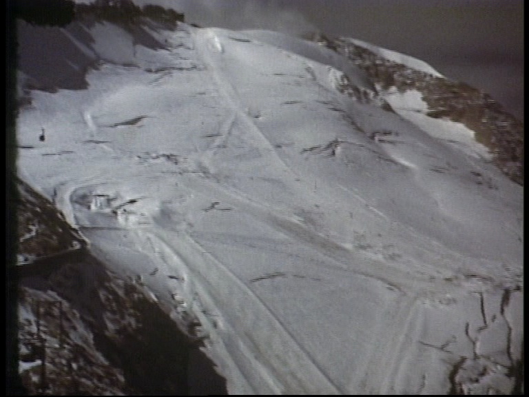 Bin mir nicht mehr sicher, wann der SL eingestellt wurde, vmtl. so gegen 12/12:30/13:00. Kurz nach der Einstellung bin ich jedenfalls wieder mit der PB hinauf und wollte die Abfahrt an der PB noch ein paar Mal fahren, weil sie so gut ging. Da ja die PB den Nachmittag über fährt, dachte ich, das wäre kein Problem. Leider aber schon, da sie bereits begonnen hatten, die Abfahrt von der PB mit Winde zu präparieren. Wenigstens konnte ich mich noch durchsetzen, dass ich die Abfahrt noch ein letztes Mal fahren durfte, natürlich auf's Seil der Windenpräparation aufpassend und im unpräparierten Teil.