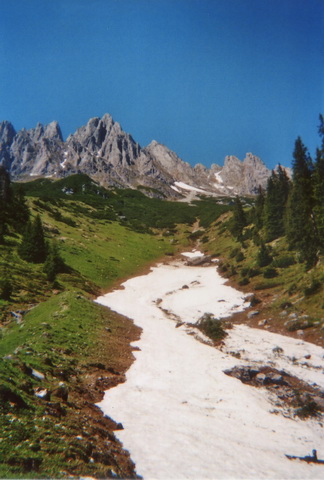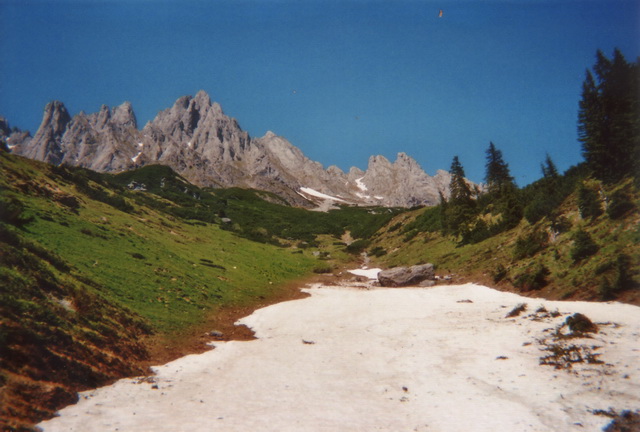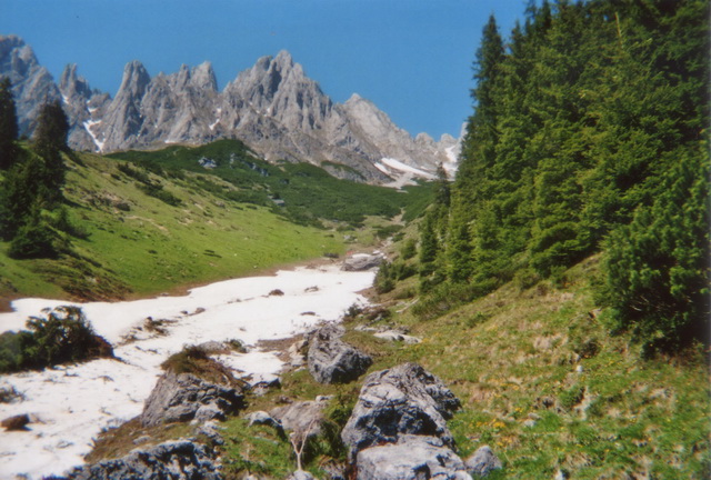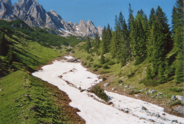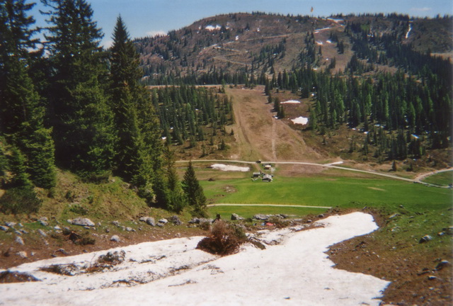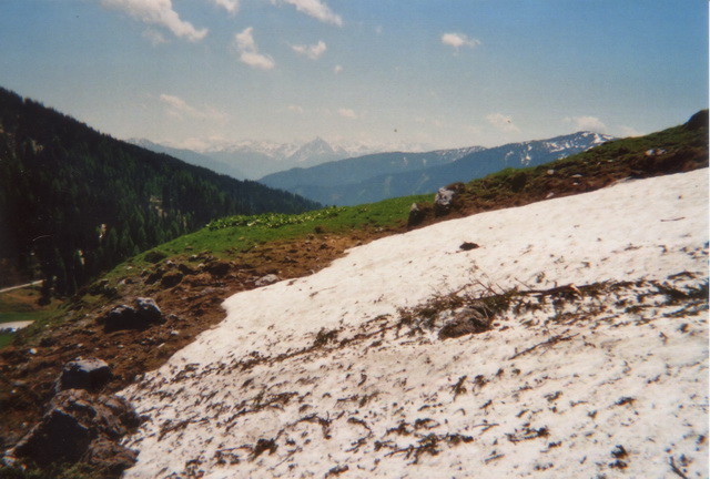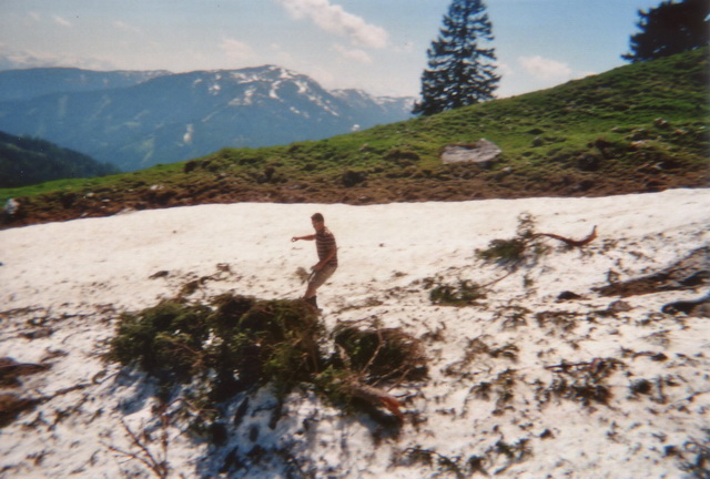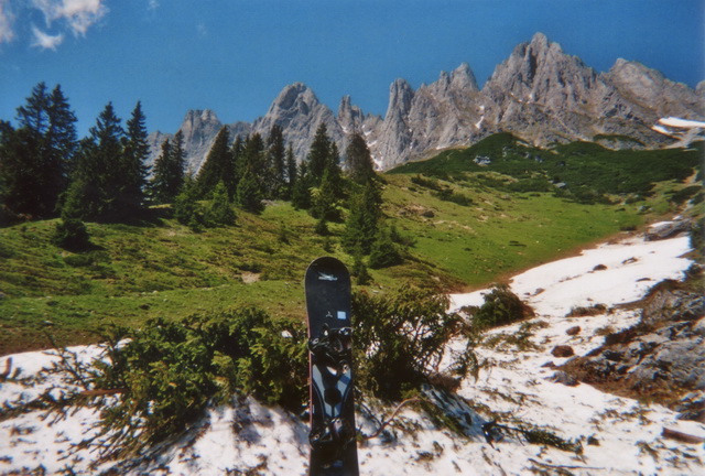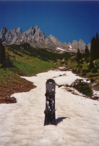 Es gab noch manche Flecken Schneereste, die mit dem Auto schnell erreichbar waren. So beschloß ich mit meinem Spezl Harry, dem Arthurhaus am Hochkönig einen Besuch abzustatten. Ich hatte mein Sportgerät nur "just for fun" eingepackt, weil ich ja die Situation, die da oben herrschen sollte, nur erahnen konnte. Das letzte mal war ich im September 1992 am Matrashaus. Weil mir die Gegend aber so gut gefällt, und ich meine alten Erinnerungen auffrischen wollte, und das mit einem Sonnenbad noch verbunden hab, war die Aktion mehr als geil.