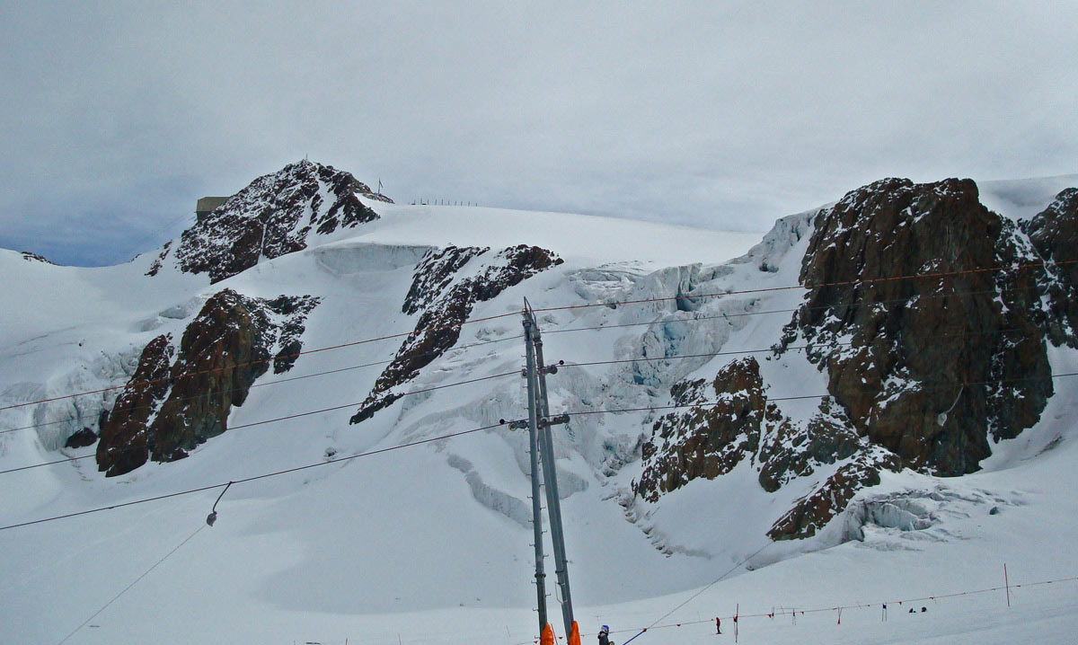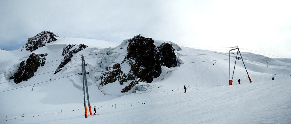 Kleinmatterhorn und die darunter liegenden Schlepplifte, die nun beide in Betrieb waren (am morgen lief nur der rechte der beiden parallelen Lifte).