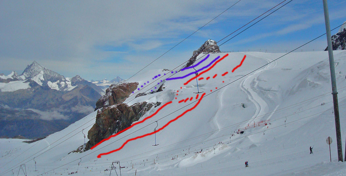 Wo verlief da eigentlich früher mal die schon lange stillgelegte Piste vom Kleinmatterhorn?