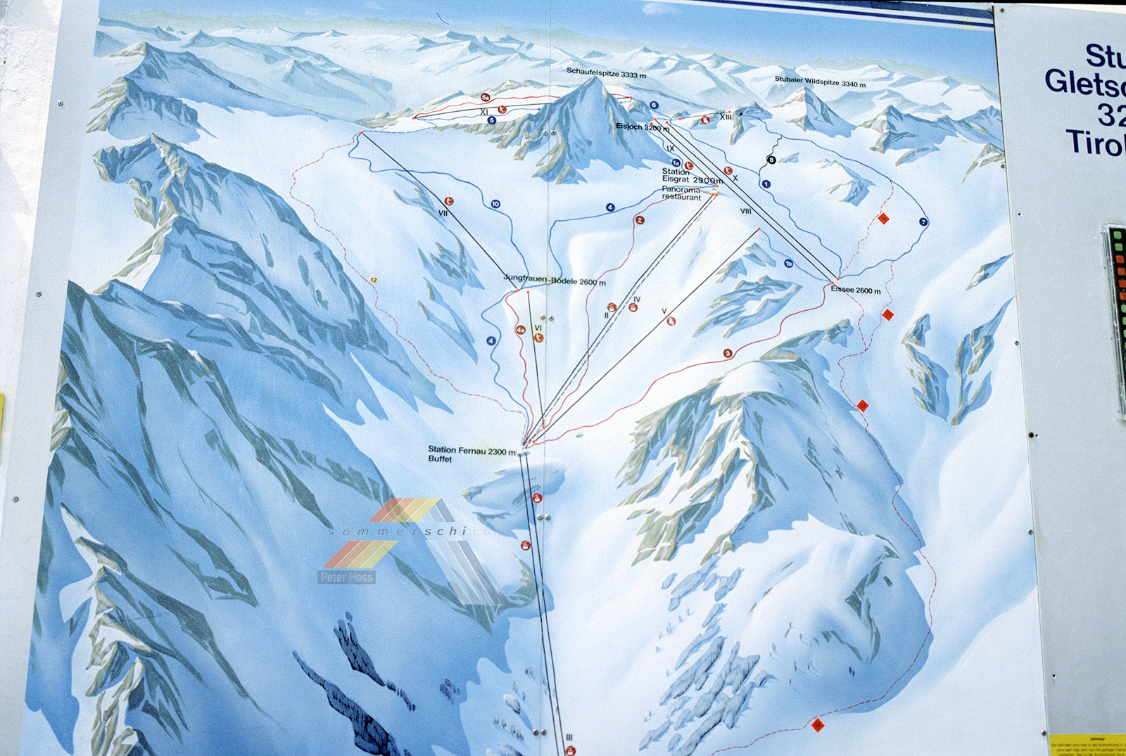 Nett aus meiner Sicht uebrigens 2 Details: 1. An der Wildspitze scheint es eine Abfahrt Richtung Schaufeljoch gegeben zu haben (zumindest scheint da etwas praepariert zu sein) -- die gibt es glaube ich heute so nicht mehr (?). 2. Im Pisten Plan: "Fernau -- Buffet" |