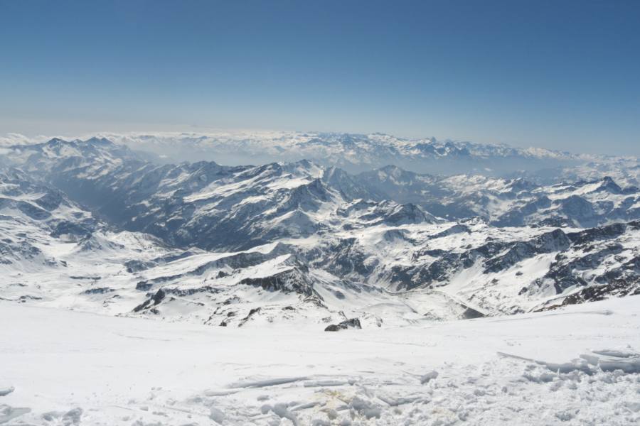 Ich bin weiter und auf die Pyramide Vincent. Ziemlich viel Betrieb da oben, und eine tolle Aussicht nach Süden