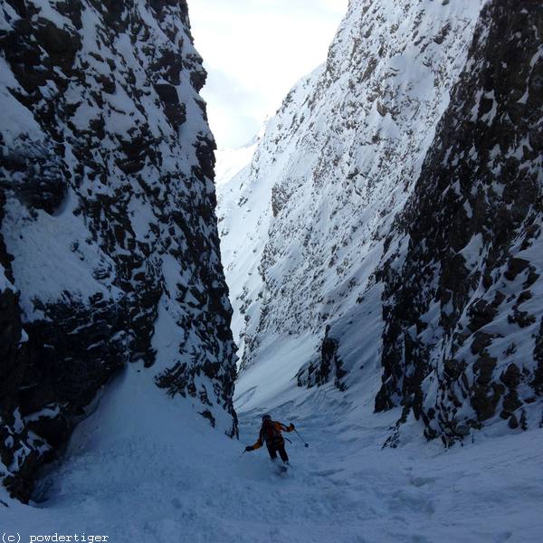 Nach ein bischen Neuschnee sind wir zum Passo Zube hoch und durchs Giacchetti nach Pianalunga abgefahren. So schön pulvrig-griffig habe ich dort die Bedingungen noch nie erlebt, auch wenn wir nicht die ersten waren (mein Begleiter war das erste Mal auf Tourenski und so hat uns eine Gruppe beim Aufstieg überholt).