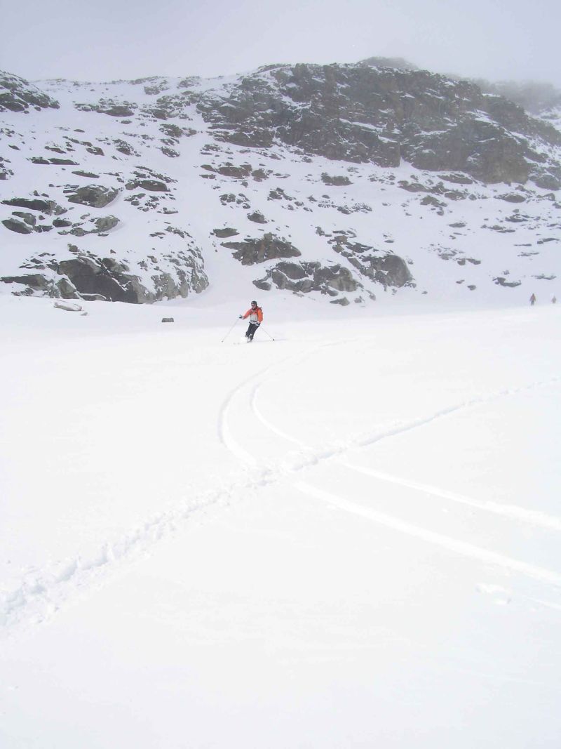 Da wir nicht weit genug in westliche Richtung gefahren sind verpassen wir die Skitour um den Telcio herum nach Stafal und fahren durch einen Couloir in Richtung Gabiet.