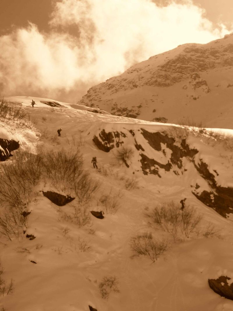 Eine herrliche Tour, die durch eine fahrende Indren-Gondel sicherlich um viele weitere Möglichkeiten für weitere Aufstiege bereichert worden wäre. An unseren letzten Tagen schneit es ununterbrochen (mindestens 90 Zentimeter), durch die schlechtre Sicht, starke Winde und hoher Lawinengefahr können wir leider keine weiteren Touren durchführen.