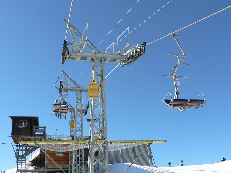 Dass der SL parallel zur DSB abgebaut war, war nicht weiter tragisch. Erstaunt war ich jedoch, dass auch der obere Doppel-SL inzwischen stillgelegt wurde und teilweise mit einem Förderband ersetzt wurde. Ob es weiter oben noch einen weiteren Lift gab, hab ich nicht gesehen.