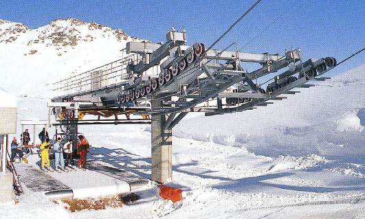 Für den Skibetrieb auf dem Gletscher, Vor allem im Sommer, gibt es eine 6er Sesselbahn von Garaventa.