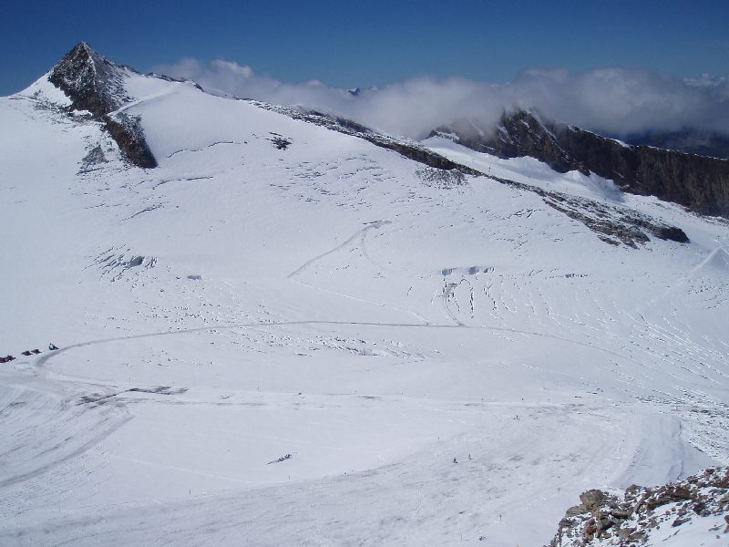 Zum Thema Gletschereis meinte der einheimische Hüttenangestellte, daß es für den Gletscher besser wäre, wenn auf ihm für parr Jahre kein Sommerskilauf mehr betrieben werden würde, da die schützende Schnee-, Eis- und Firnschicht schneller als sonst abgetragen werden würde.