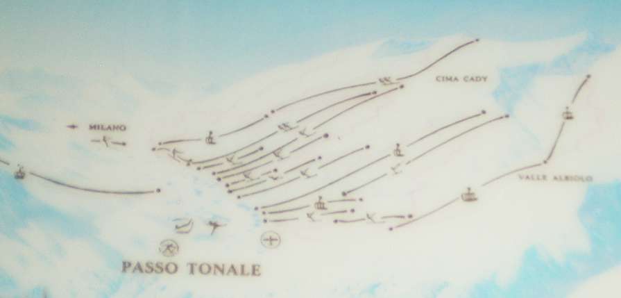 Der Presena-Gletscher am Tonale ist ein Winzling verglichen mit anderen. Er reicht von ca. 2700 bis 3000m, ist (derzeit) mit zwei parallelen Schleppliften erschlossen und kann dementsprechend in Ausdehnung und Variantenreichtum natürlich bei weiten nicht mithalten mit Hintertux, Sölden oder dem Stilfserjoch. Dennoch hat er zwei schöne Pisten mit durchaus beachtlicher Neigung, die man z.B. am Kitzsteinhorn und am Dachstein vergebens sucht. Bemerkenswerterweise sind die Pisten erst durch den massiven Gletscherschwund der vergangenen Jahre so anspruchsvoll geworden (Mehr zur historischen Entwicklung weiter unten?). Die dritte Piste führt entlang der Zubringer DSB vom Gletscherrand weiter zum Passo Paradiso (2500m). Sie hat einen kurzen, schönen Starthang, ist anschließend aber nur noch ein Ziehweg. Die Höhenlage und günstige Exposition erlaubt es häufig im Herbst ? so auch heuer ? , dass sie befahrbar ist wenn auch offiziell gesperrt. Vom Paradiso zurück zum Tonale führt jene hier schon häufig diskutierte ?klassische Schwarze?, die aber in aller Regel erst mit dem Winterbetrieb ab Dezember möglich ist und bis in den Juni offengehalten wird.