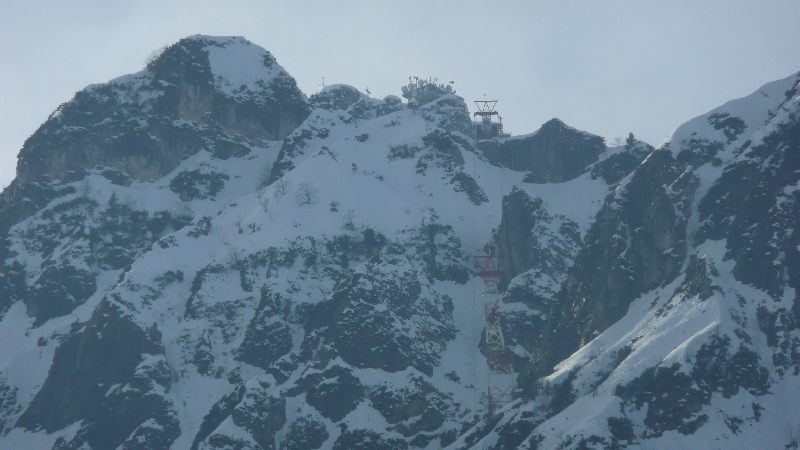 Dateikommentar: in der Mitte befindet sich die Bergstation der Seilbahn mit ankommender Kabine