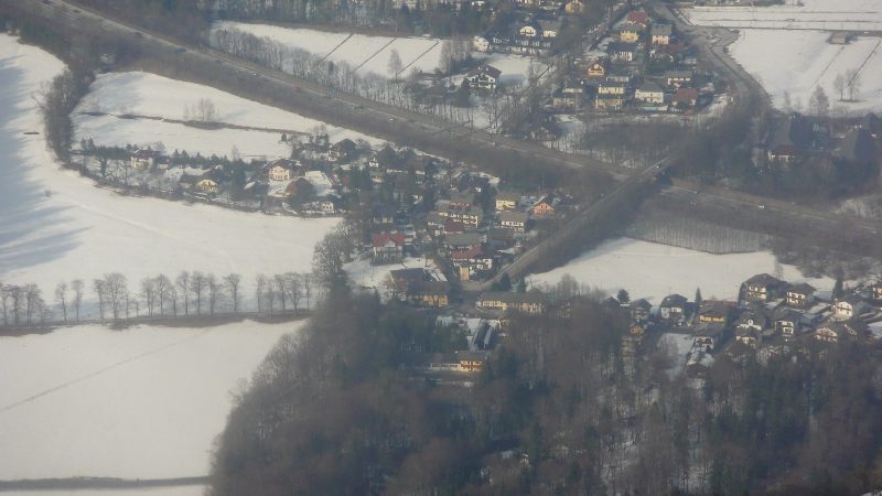 Dateikommentar: wir schweben über die Häuser von St.Leonhard und blicken nach Norden Richtung Salzburg