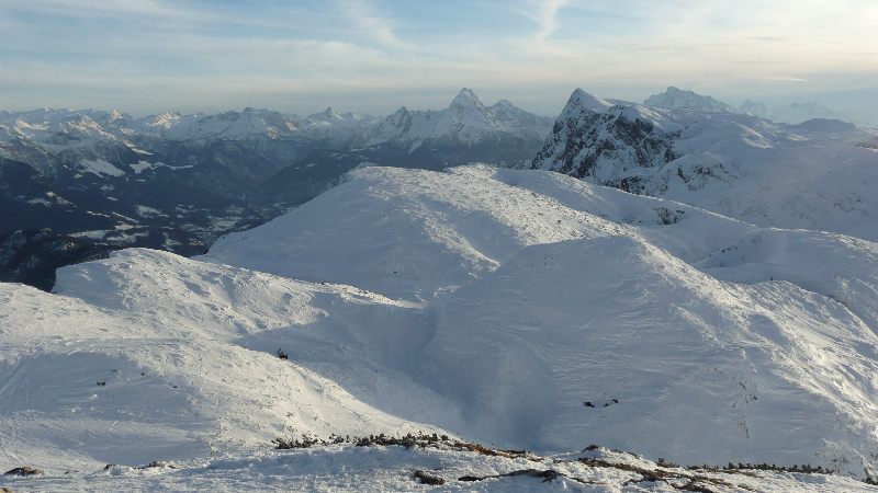 Von der Bergstation gelangt man dann in ca. 20 Minuten Fußmarsch bis zum eigentlichen Startpunkt der Skiroute, die sich unterhalb des Salzburger Hochthrons ( 1.853m ) befindet. Was dann kommt, ist ein Erlebnis der besonderen Art