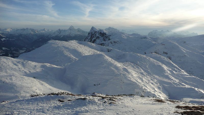 Die Wettersituation der letzten 3 Tage zuvor war aus winterlicher Sicht eher zu mild gewesen, stellenweise regnete es bis auf 800 Meter herab... An diesem Tag jedoch kam Wetterbesserung mit heiteren Aussichten bis zum Nachmittag . Die Temperaturen lagen bei ca. +10 Grad im Tal, und Ca. -0 am Berg. Die Schneehöhe betrug geschätzt zwischen 200 cm und 400 cm am Berg und zwischen 20 bis 60 cm im Tal, dazu war die Schneequalität war auch noch überzeugend!!