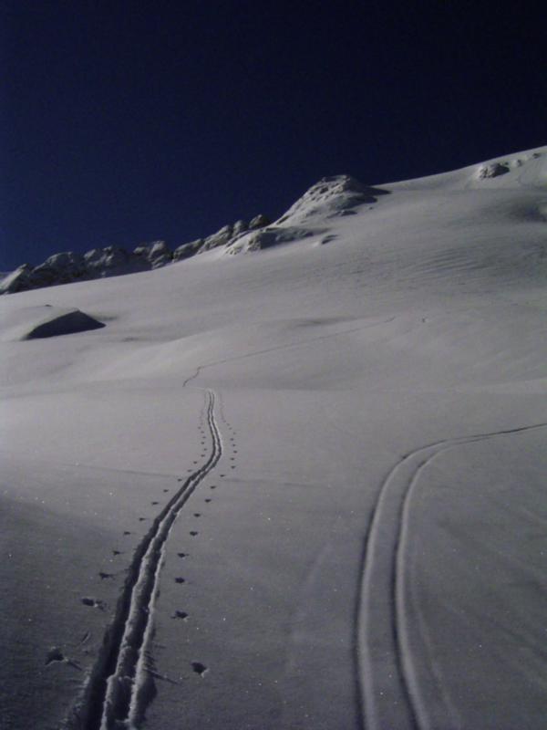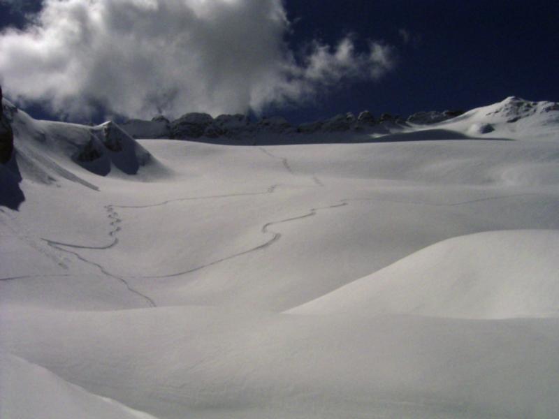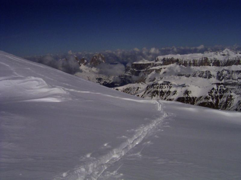 Dieser Zeitraum ist für Skitourengeher und Variantenfahrer an der Marmolada ideal. Man kann mit ca. 700Hm beide Gipfel erreichen, hat keinen Massentourismus, Pulverschnee und herrlich unverspurte Hänge am Gletscher.