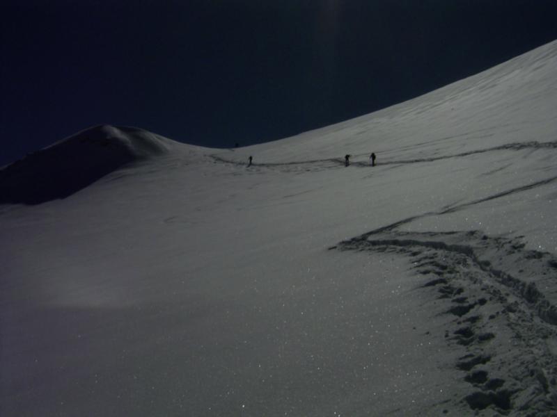 Dateikommentar: weiter im Aufstieg am Gletscher zur Punta Rocca. Die Neigung ist beachtlich.