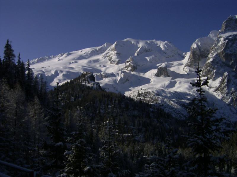 Es mag mein persönlicher Eindruck sein, den ich aber sicherlich mit vielen teile: Die Marmolada ist einer der faszinierendsen Berge der Dolomiten, wenn nicht sogar der gesamten Alpen. Auf der Nordseite der weich fließende Gletscher, auf der Südseite die bis zu 800 Hm senkrecht abfallende Südwand. Der Gletscher hat seit einem Vorstoß in den frühen 80ern wie fast alle seiner Art an Ausdehnung und Volumen abgenommen, zeigt aber immernoch eine beachtliche Größe und hat für lange Variantenfahrten eine ideale Neigung. Die Südwand hingegen ist ein Kletter-Eldorado mit allen Schwierigkeitsgraden der klassischen Alpinskala.
