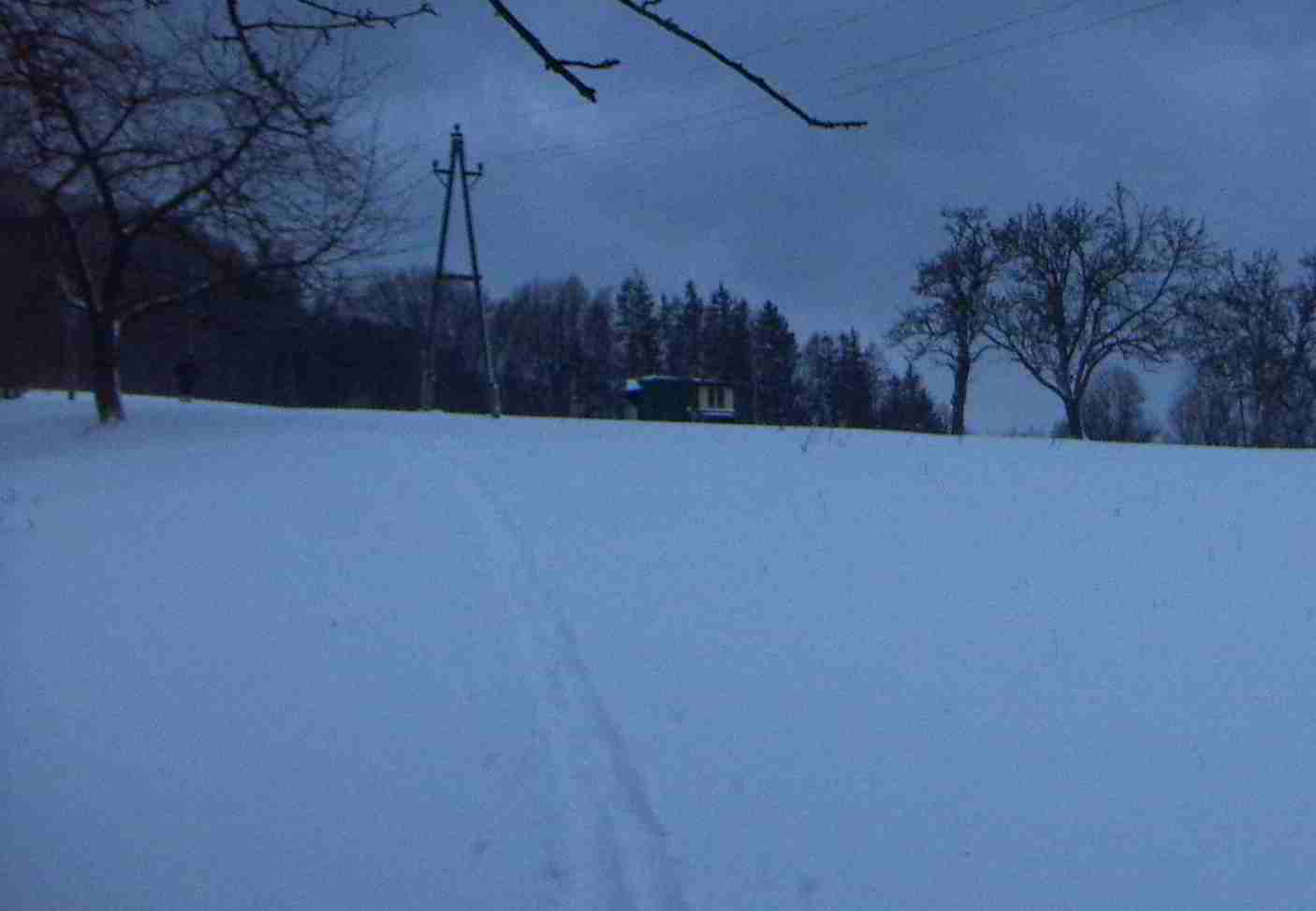 nach einem flachstück und dem ersten längeren hang kommt die talstation des babyschilifts ins blickfeld (bis hierher kann man auch mit dem auto fahren)