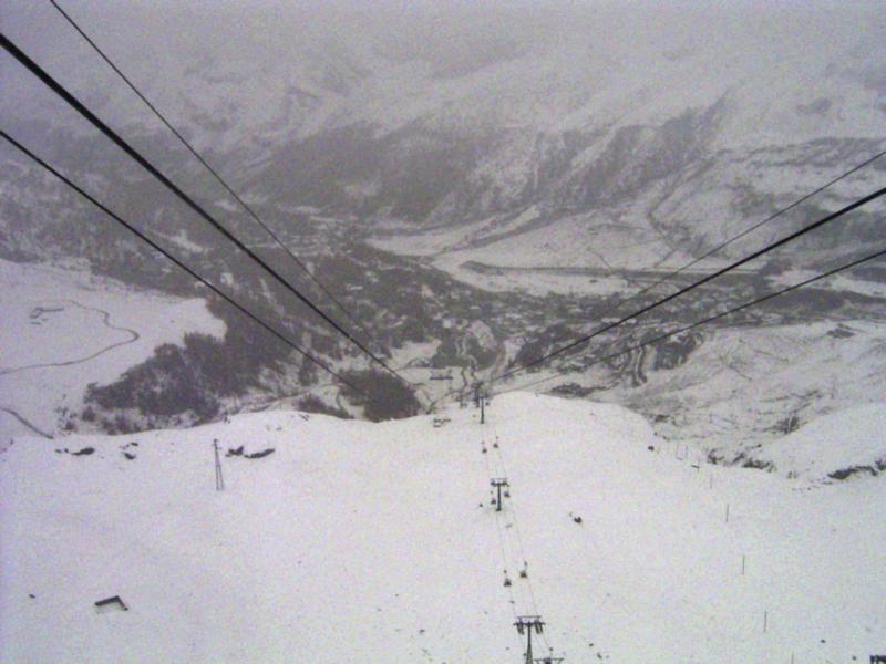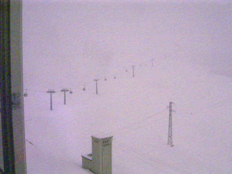Am Einstieg zur renovierten EUB gab's dann eine kleine Einweihungsfeier mit Sekt, Tee, Rum, Cioccolata etc. Das ließ sich das lokale Fernsehen natürlich nicht entgehen und schickte ein Team vorbei. Dumm nur, dass das "event" erst hinter den Drehkreuzen stattfand, so dass die Boarder alle schon vorher die Biege zum Babylift machten. So stand ich da mit dem Fernsehteam und den Bahn-Bediensteten alleine rum - oder Rum. Das wird ne tolle Sendung. Natürlich wurde der Chef der Bahnen interviewt, der Fahrdienstleiter, der gleich ein Bremsmanöver einlegen sollte, und dann natürlich auch die Fahrgäste... also DER Gast. Denn so richtig viel los war ja hier nicht. Oben angekommen, hat's dann wirklich ganz schön gepfiffen... Nebel und Schnee von der Seite, ziemlich unwirtlich auf 3500m. Aber da ich die Felle nun schon dran hatte, hab ich mich in den Wind gelegt und bin auf der menschenleeren Piste bis unters Kleine Matterhorn gezogen. Wettertechnisch war das schon ziemlich Hölle, so dass ich das Photographieren völlig vergaß. Ist natürlich ärgerlich, aber irgendwie hatte ich da doch mit anderen Dingen zu tun... die Orientierung war trotz einer Sichtweite von gefühlten 70cm zum Glück einfach, weil die Pisten links und rechts gut markiert und teilweise sogar abgesperrt sind. So ein ganzes Gletscherskigebiet für sich alleine hat schon was, die Pisten waren auch prima präpariert, nur halt hin und wieder Triebschnee drinnen. Vom Kleinen Matterhorn ging's dann die Führerpiste runter, und siehe da, im unteren Teil konnte man sogar erahnen, dass im Matter Tal strahlenster Sonnenschein herrscht. Leider half das ganz und gar nicht, ich musste wieder anfellen und in die Suppe am Teodulsattel zurück. Auf italienischem Gebiet waren die Pisten leider noch nicht abgesteckt. Die Ventina fiel wegen des spaltenreichen Gletschers somit von vorneherein flach. Am Bontadini war es auch nicht viel angenehmer, weil der Wind recht viele Felsen freigelegt hatte. Die Piste ab Fornet bis Plan Maison entlohnte dann aber für die Mühen. Ziemlich von Wind und Wetter angeeist und durchgebeutelt traf ich dann am Plan Maison auf die happy Skigemeinde... irgendwie befremdlich
