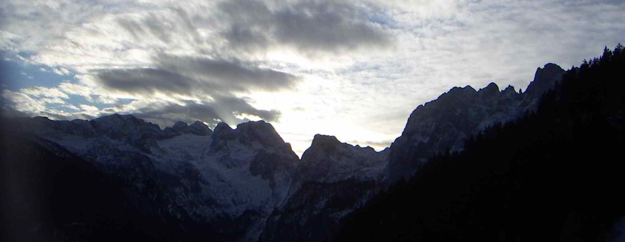 frühmorgendlicher blick zum dachsteinmasisiv und gosaukamm nach etwa 45 min aufstieg