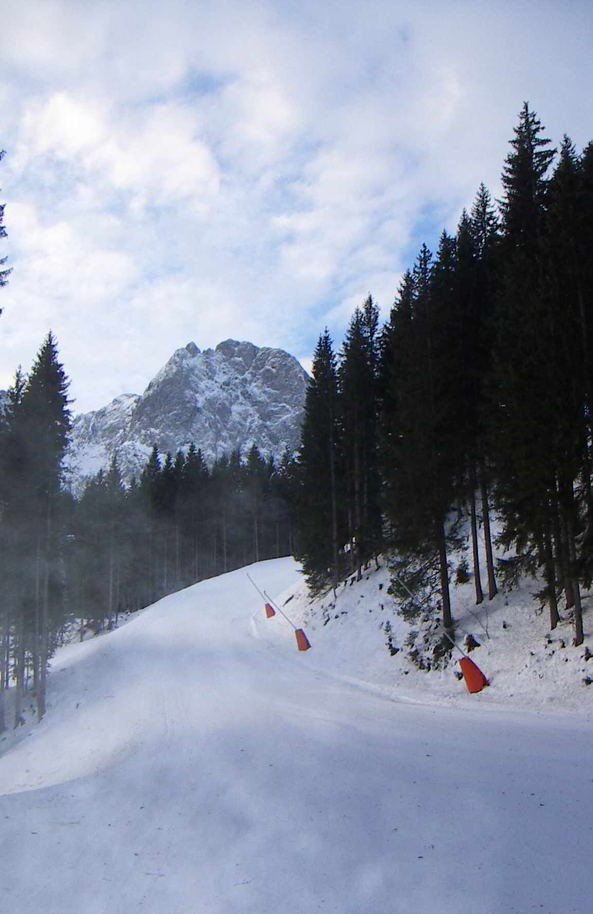 - also entschied ich mich für option 4: beschneite piste "mit aussicht" in einem bereits geöffneten schigebiet - der haken an der sache ist ja nur der, dass ich vor den schifahrern oben sein will ...