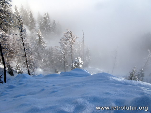Dateikommentar: From there, a wellness run along a foot path. 2 cm of snow covering roots and whatsoever.