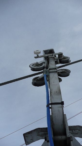 Dateikommentar: unterer Trassenverlauf der Zweiseilumlufbahn; die blaue Piste überquert auch eine Straße