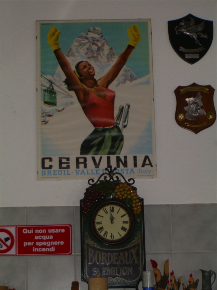 Dateikommentar: Alte Cervinia-Werbegrafik von Cervinia im Ventina-Restaurant au italienischer Seite, eine meiner Lieblings-Knillen dort