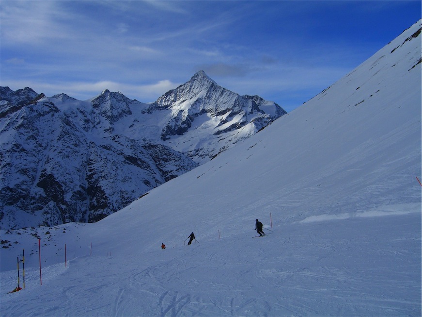3) Skigebiet: Von der Grösse, der Vielfalt, der Zahl der Möglichkeiten (auch Freeride) schon sehr beeindruckend. Leider nur oft nur mit Einschränkung (siehe Punkt 2) zu geniessen. Zudem gibt es auf den Pisten trotz der Grösse einfach zuviele Nadelöre (die 10.000 Gästebetten plus Einzugsbereich Täsch, Randa etc. sind halt dann doch zuviel ...). Dabei ist es nicht nur die Überfüllung (tendenziell kann man die tw. durch antizyklisches Verhalten umgehen), sondern dann v.a. die Überbeanspruchung. Was nutzen 100km + Pisten, wenn man davon nur die ersten 10-20 km wirklich geniessen kann (Pisten sind ab dem späten Vormittag oft "zerfahren" bzw. vereist).